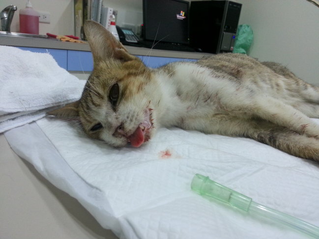 貓咪全身血跡斑斑、並有多處傷口,