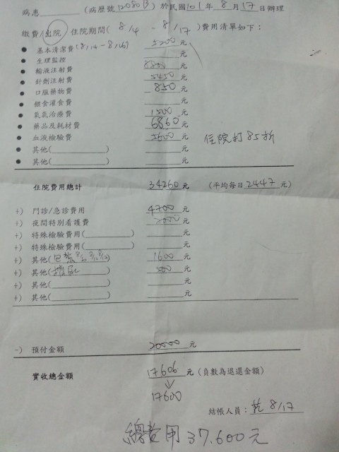 第一間醫藥費用37600元