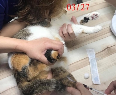 動物近況說明: 在協會的安養之家休養生活,食慾精神都不錯,配合醫生指示回診檢查,照護人員遵照醫囑每日給藥、皮下注射、 準備適合的食物。