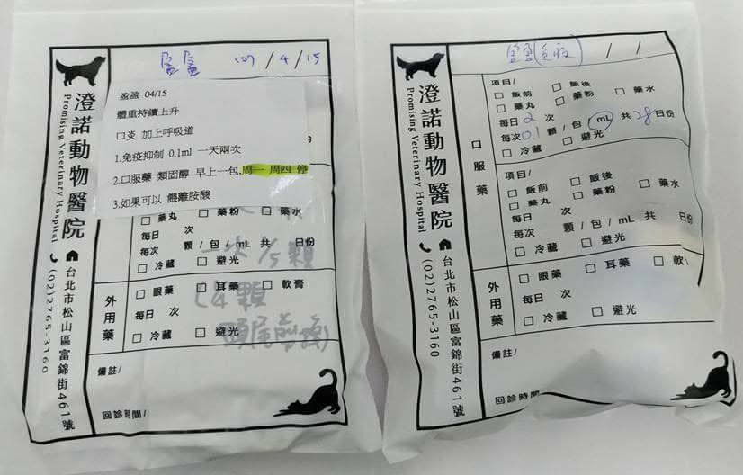 本次拿二週的藥,藥的種類不變,但類固醇周一跟周四停用。