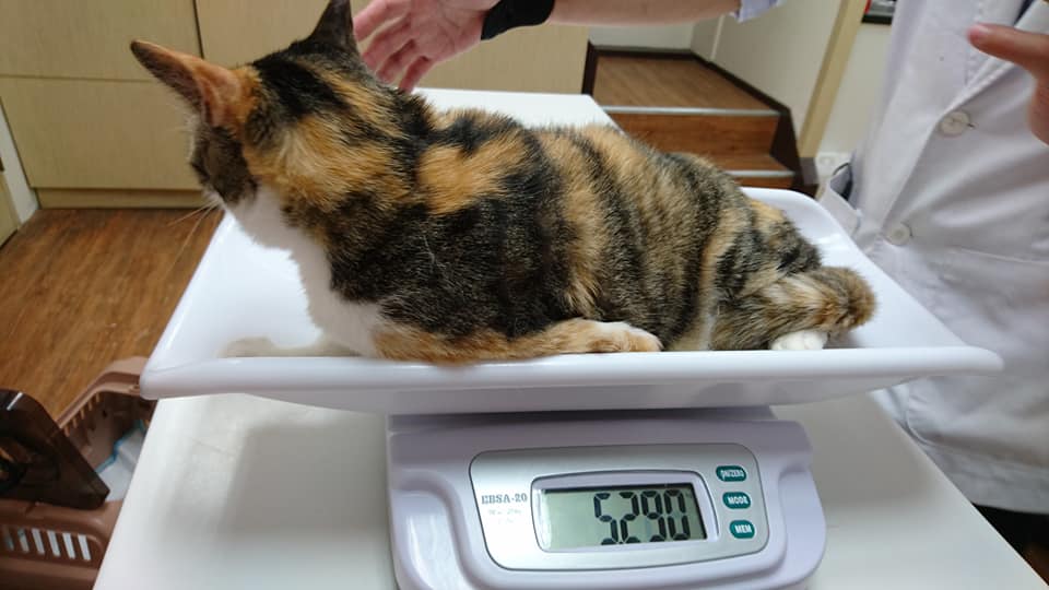 雷夢娜,體重5.44有進步,紅血球狀況有改善,紅血球降到8.2 表示有補充到水分。