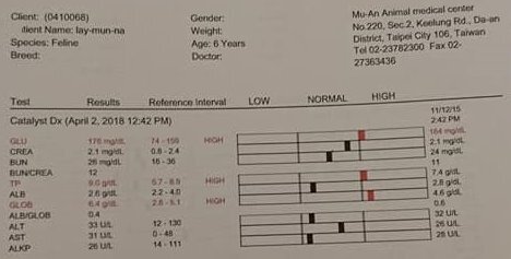 血檢報告,免疫球蛋白過高6.4 腎指數偏高,血糖偏高,白血球沒問題,沒有明顯的細菌感染問題。