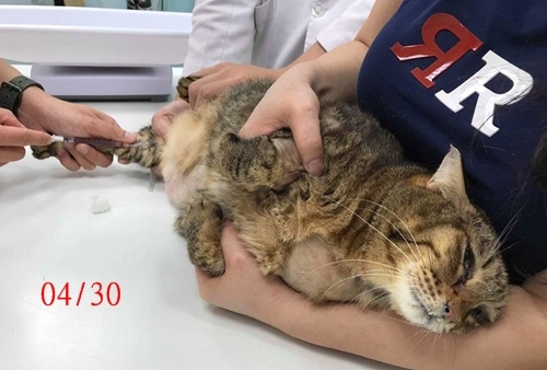 callme在醫院治療一陣子後住進安養之家休養,但因他的呼吸道疾病先前太嚴重,仍需持續到醫院回診,鼻膿嚴重時須要洗鼻腔將積膿沖出,每日服藥、氣霧治療,每兩日都要去醫院拿抗生針劑早晚施打,累積下來的醫藥費很可觀,希望大家可以幫忙。