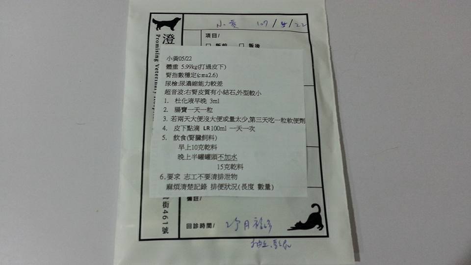 又醫生考量到因為服用類固醇的關係會導致牠血糖升高