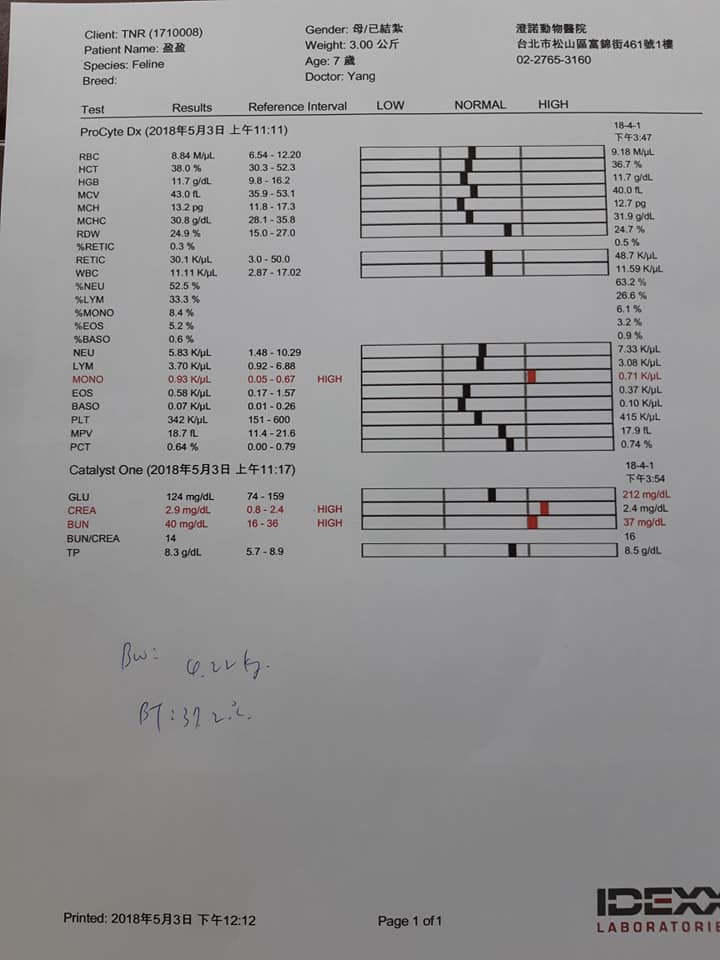本次血檢主要驗血糖,超標但還不需要擔心,CREA & BUN緩慢增高,但也還算正常,但是體重一直增加需要控制。
