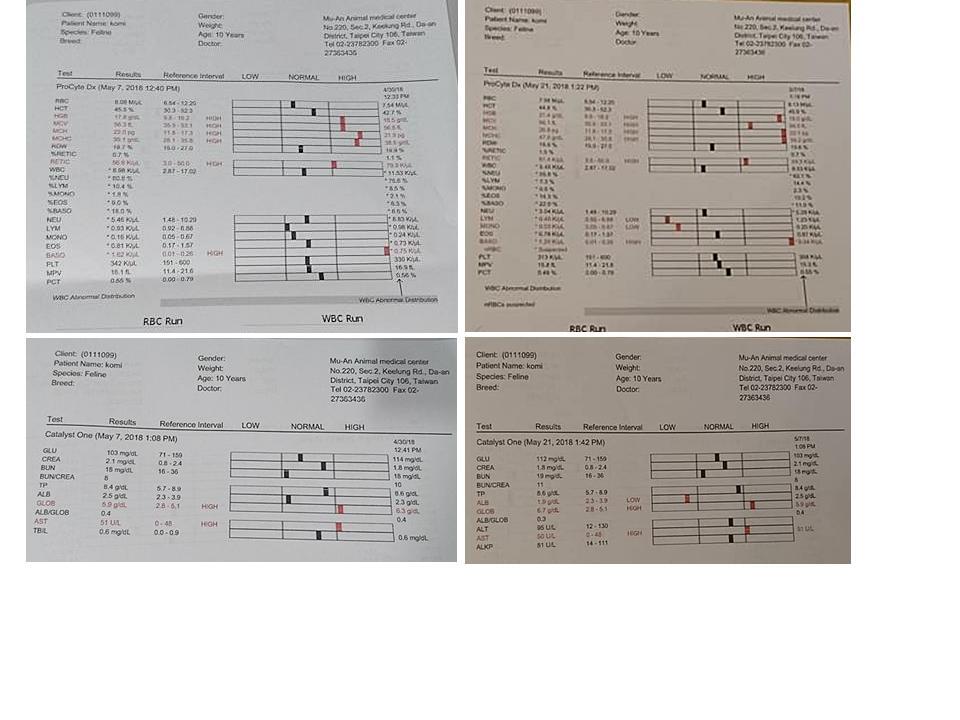 整個發炎變嚴重,紅血球往下掉,白血球有變少,有輕微敗血現象。