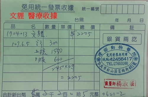 共4,540元動物近況說明: 【文貍】