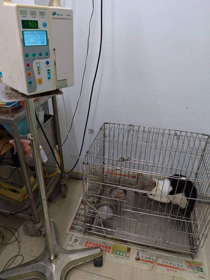 2018/8/3傷貓因上呼吸道感染無法自行進食,進行點滴給予水分及藥物