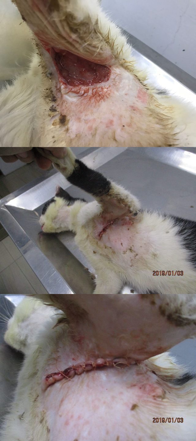 主題: 繩子繞套右肩左腋受傷妙鼻貼黑白公貓 申請者姓名: 許桂菱 花色: 申請日期: 2019-01-18 12:03:45 申請者部落格: 申請者臉書網址: cherry.shu@yahoo.com.tw 所在縣市/合作醫院: 彰化縣/成愛動物醫院 治療費用: 24000元 需求人數: 86人 已結案 (2024-06-01 13:09:11) 報名人員: Ying Hua x3(已付款)、黃子睿(已付款)、Bella Chen x5(已付款)、林小魚(已付款)、詩詩 x2(已付款)、Anita x3(已付款)、Hsin x3(已付款)、Alice(已付款)、GreenFire x2(已付款)、eve x2(已付款)、薇薇安(已付款)、洪凱威 x2(已付款)、demidustar x3(已付款)、ivy x2(已付款)、洪凱威 x2、洪凱威 x2、艾瑞兒、艾瑞兒 x2(已付款)、王豆乾(已付款)、趙嘉馨 x3(已付款)、Rishia、張嘉琪(已付款)、龜 x2(已付款)、Ting lu x2(已付款)、Olica(已付款)、Rita Hsu(已付款)、Rebecca Lin(已付款)、Karen Hsieh x2(已付款)、Joyce(已付款)、Angel Lin x2(已付款)、Neko Chang x2(已付款)、葉王民妤 x2(已付款)、Dorisyoko(已付款)、Sola(已付款)、周圈叉 x3(已付款)、怡廷、怡蓉 x2(已付款)、Leanne(已付款)、Katherine Yim x3(已付款)、Ingham Kao(已付款)、Crystal(已付款)、Sue(已付款)、nicole chen(已付款)、Cynthia Nien x2(已付款)、PiPi0608 x5、Cherry Wang x4(已付款)、Ying x6(已付款)、Wen x5(已付款)、 候補人員: 動物病情說明: 於2018/7/10(二)晚間在鹿港老街餵養區出現一隻陌生街貓,原本只是拍照記錄貓數及節育狀況,卻赫然發現街貓疑似被橡皮筋套住右肩及左腋,恐若未就醫傷及其生命,故進行放籠救援,因非原生地街貓,等待出現誘捕的時機實難掌控,終於2018/7/12晚間順利誘捕成功!