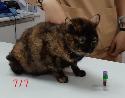動物近況說明: 配合醫師的治療用藥及醫囑食物,喜娘目前的精神食慾等狀況已較穩定些,但因此疾病會使她狀況起伏不定,仍須要定期回診追蹤以掌握病情變化,每日須服用藥物與皮下注射,現在喜娘是以較高劑量的類固醇做治療,希望她的狀況能越來越穩定,減少藥物的用量。