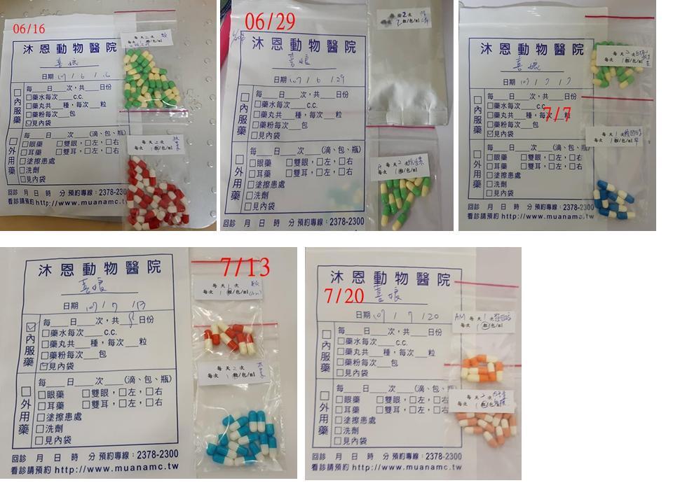 喜娘紅血球總數下降、白血球上升,今日門診(7/20)發現口炎及口臭的狀況,所以口服藥多增加一種抗生素,已與原本就在使用的口服藥做在一起,所以照顧須知的口服藥仍為(1)類固醇,一天一次、早上、每次一1顆。(2)抗生素+血擴,一天二次、每次1顆。