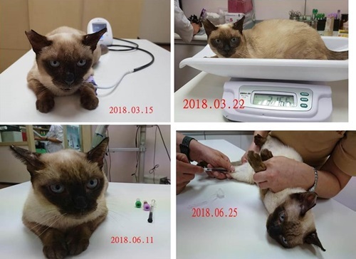 動物近況說明: 暹知在積極配合醫生醫療及小心的照護下,健康已慢慢的好轉,原本因經常鼻涕須要每天的氣霧治療,現在已改善不須要再噴霧,也因血檢指數有進步,可以延長時間回診,希望暹知的情況會越來越穩定。