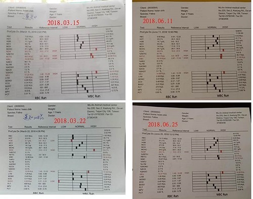 抽血結果顯示,暹知的腎、磷、紅白血球指數都有上升一點,造血針改成兩週打一次、福斯利諾降磷藥一樣是一次6顆;每日皮下點滴施打前一樣藥空腹秤體重並記錄在紀錄表上給醫師看