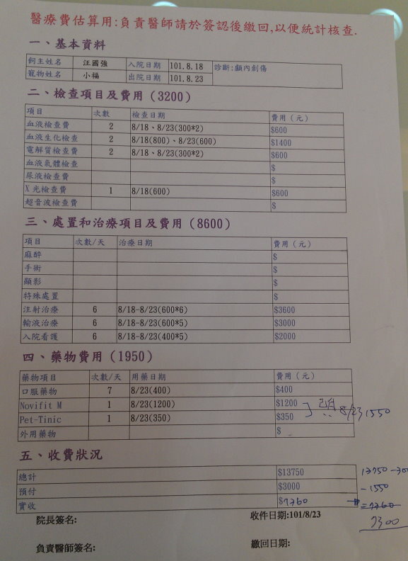 原訂是星期五晚上要去接 , 但是醫生直覺牠不太對勁 , 所以建議還是留院觀察一天 , 不收費用