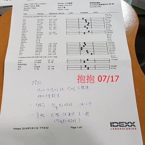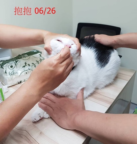 協會照護員悉心照顧及定期回診服藥,抱抱的健康也逐漸穩定,只是因先前病得太厲害有時仍會淚眼鼻涕,平時服藥點眼藥水控制,今年7月時因鼻涕變多又濃,醫師診斷後認為須要清洗鼻腔將較濃的鼻涕沖出,於是7/16安排抱抱接受清洗鼻腔,希望大家幫忙抱抱的治療費用。