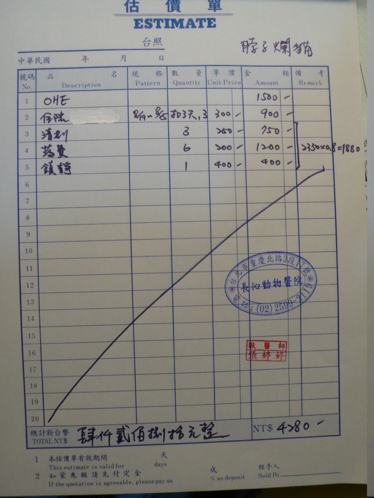 8月25日,此貓治療完成出院,已回置原地,醫療費用共4280元,後續醫助部分,由我負責申請。