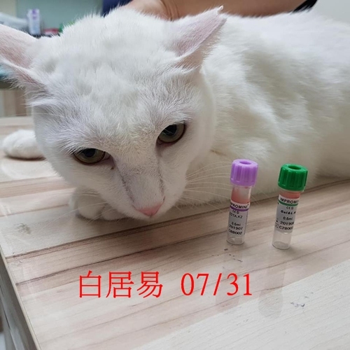 白居易在安養之家過得很安逸舒適,口炎情況在持續的服藥後已得到控制,他食慾變得更好,也越來越大隻,讓全身雪白的他看起來更龐大,但他個性還是像小朋友一樣,開心就翻肚肚,吃藥不開心就喵喵抗議,非常可愛,希望他一直健健康康的。