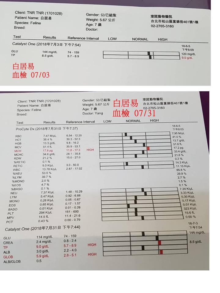 主題: 口炎的白居易、口炎的文貍 申請者姓名: 臺北市支持流浪貓絕育計劃協會 花色: 申請日期: 2018-08-13 15:49:22 申請者部落格: 申請者臉書網址: http://www.tnrtw.org/ 所在縣市/合作醫院: 台北市/澄諾動物醫院 治療費用: 6345元 需求人數: 14人 已結案 (2024-06-01 13:07:47) 報名人員: 鈷藍(已付款)、Ruth Wang(已付款)、HSIU x2(已付款)、Linus(已付款)、Glow x2(已付款)、C RAY x7(已付款)、 候補人員: 動物病情說明: 【白居易】