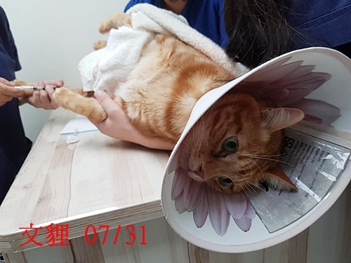 文貍是協會志工從板橋收容所救援的貓咪,當時他還年幼,被補獸鋏所傷,傷口極痛又有鼻氣管炎因此不吃不喝,志工趕緊將他送醫治療。