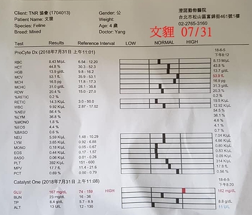 文貍整個口腔整體改善很多,今天有檢驗血糖132,平日食慾良好,這次類固醇投藥時間間隔有拉長,請按照藥包上日期投藥。