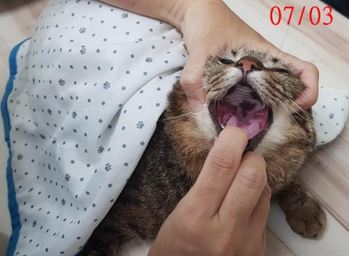 經過持續治療後,盈盈的狀況開始有了較大進步,體重及食慾都增加,口炎也好轉,但因先前狀況太嚴重,為了使她健康穩定,至今仍需要定期回診檢查、每日都要服用免疫抑制劑,發炎情況嚴重時也要吃抗生素以控制口炎,盈盈的醫療還須要一段很長的時間,希望大家可以幫忙盈盈的醫療費用。