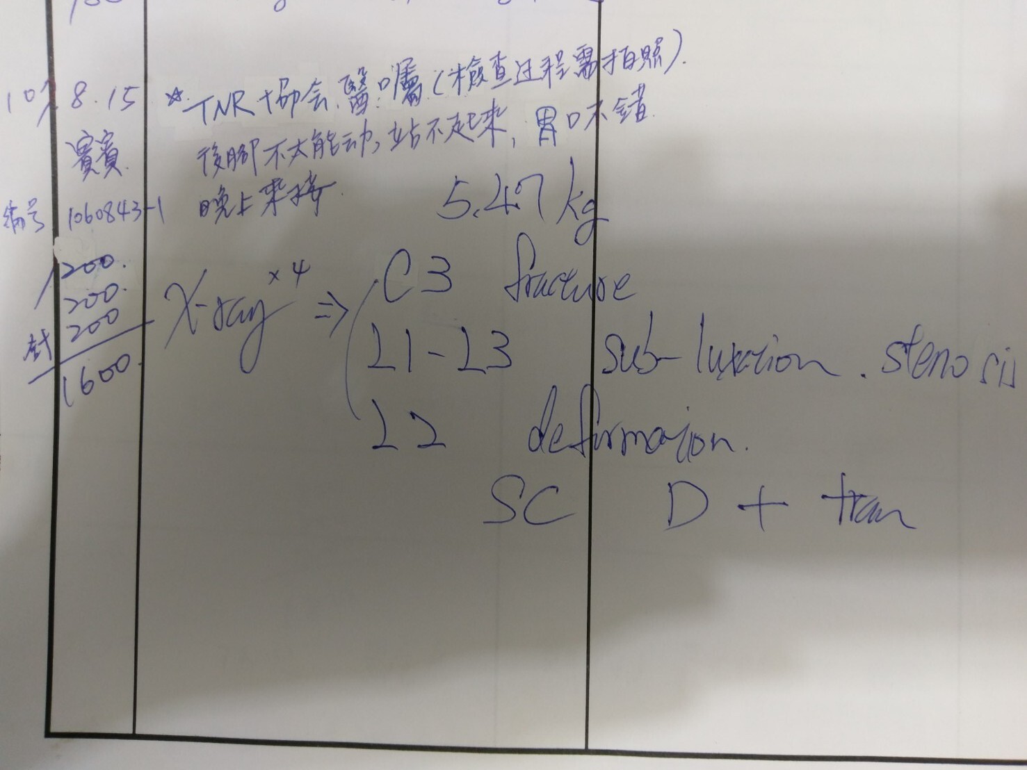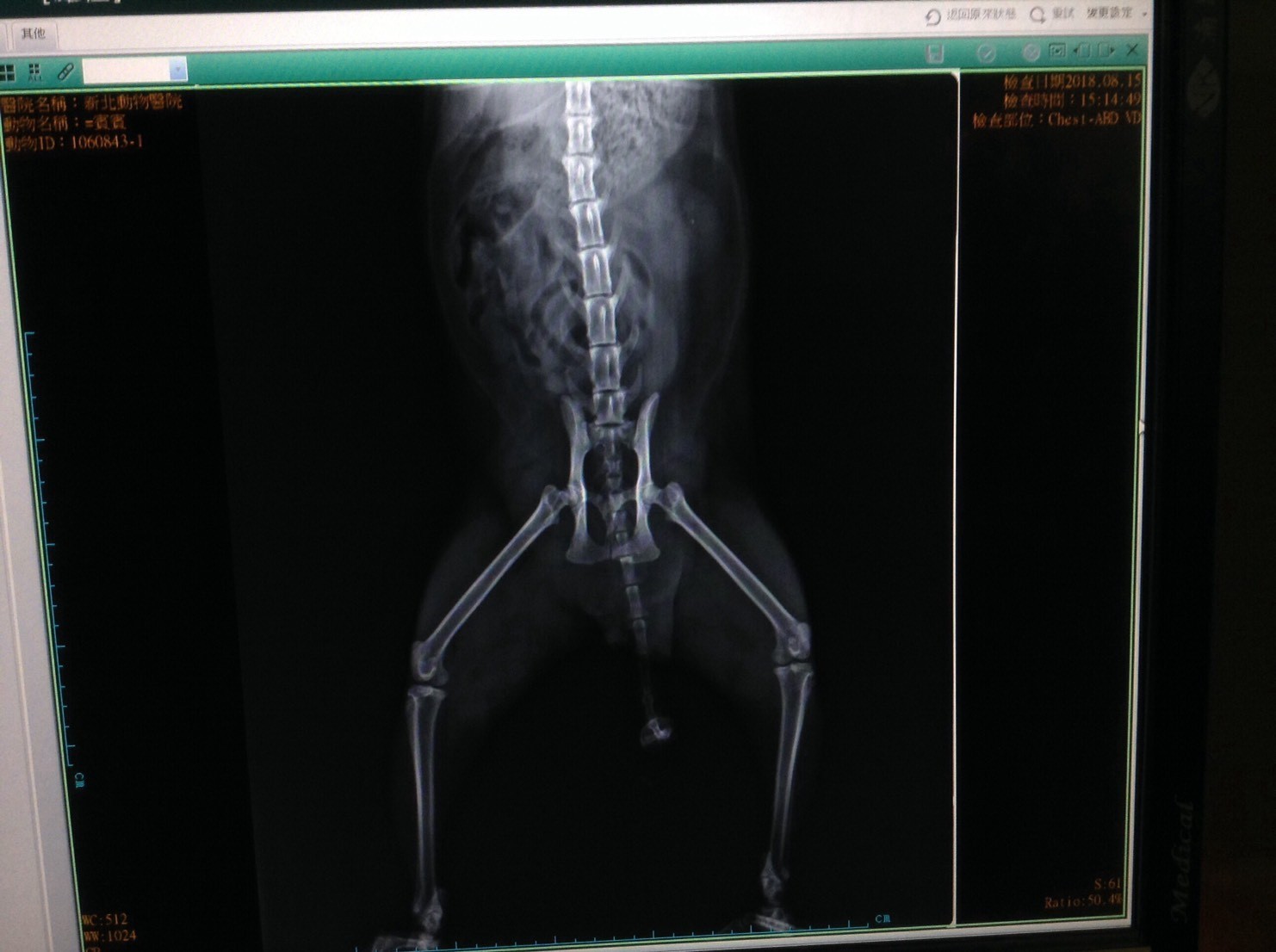 2018/8/16 轉院至內湖的維康動物醫院,初步評估可能需要手術來固定脊椎,但是仍需要做斷層掃描來協助病情的判斷。