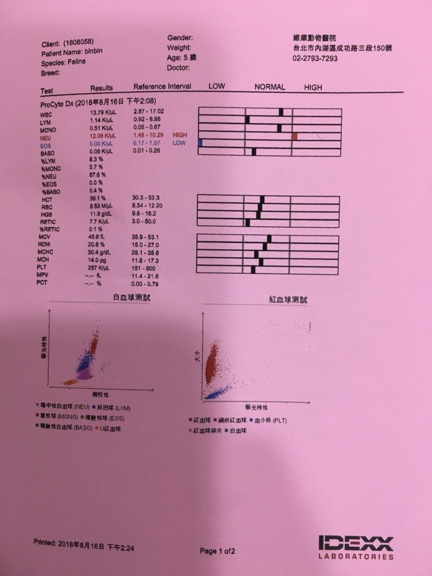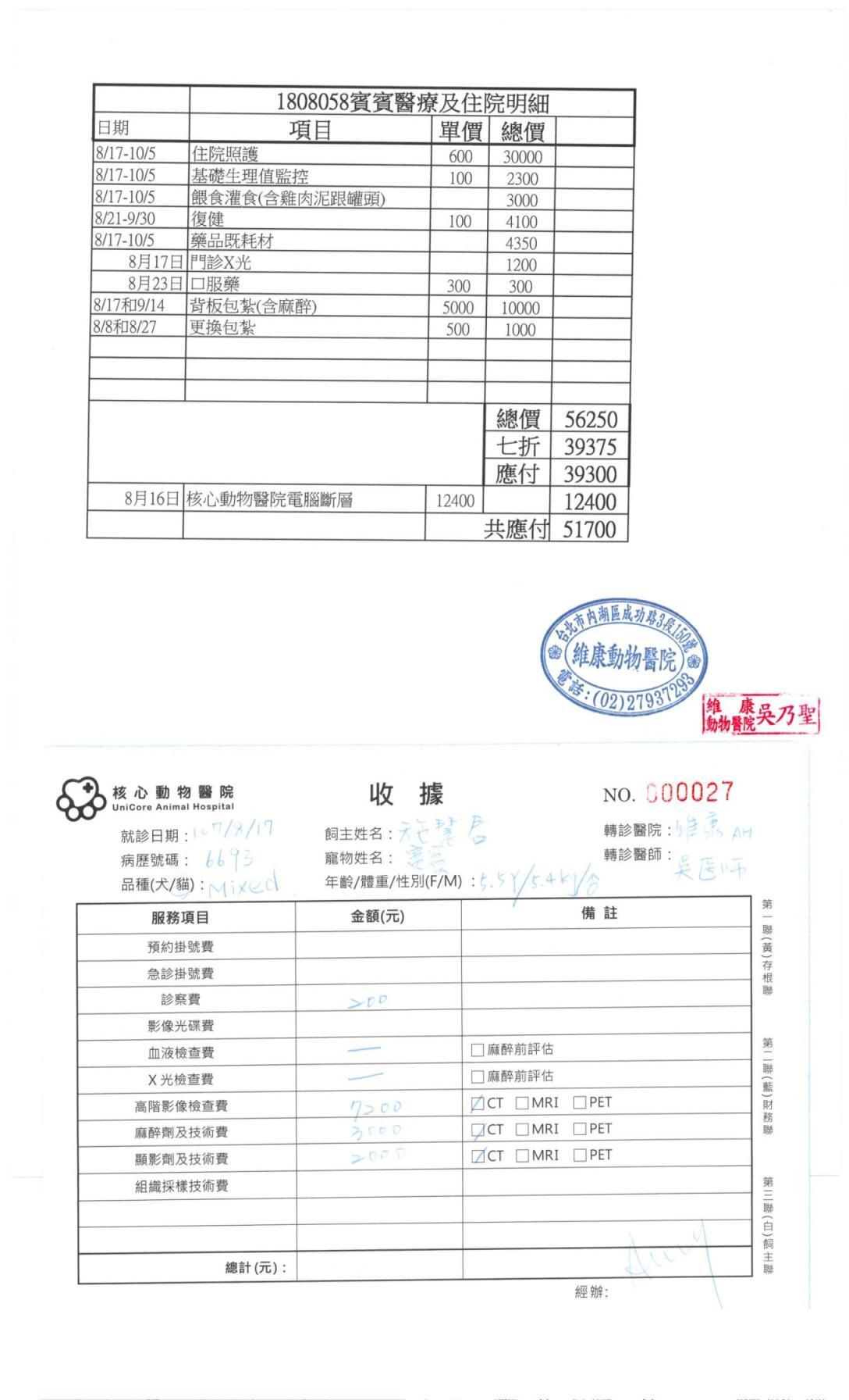 2018/8/17 因維康沒有斷層掃描設備,轉介至核心動物醫院做斷層掃描的檢查。