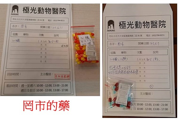 註:舊藥先吃。動物近況說明: 罔市除了每日服藥控制心臟病,照護員並早晚測量她的呼吸心跳,罔市個性很乖巧相當撒嬌,常常在幫她測量呼吸時一直翻肚肚大聲呼嚕,模樣真是可愛極了,希望她一直健健康康的。