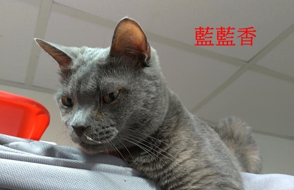 藍藍香是102年協會從收容所救出的貓咪,當時她被補獸鋏夾住,兩條前肢已化膿腫脹,渾身散發著惡臭,除了嚴重鼻氣管炎,還懷有身孕,原本已被列入安樂死名單,協會志工接到通知,一早立即趕去將她接出送醫。