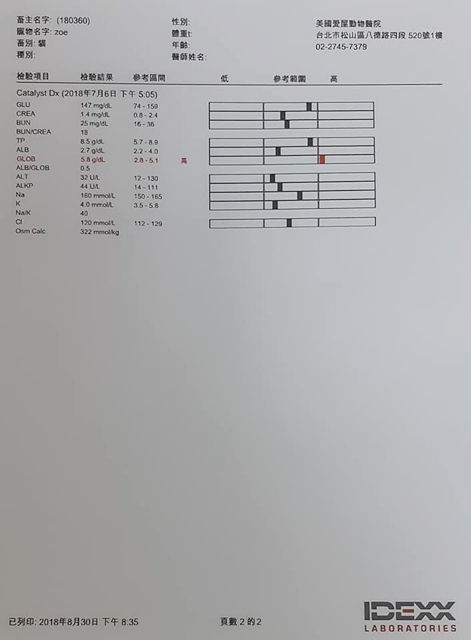 主題: 松山區復源公園被潑撒不明液體的zoe 申請者姓名: 臺北市支持流浪貓絕育計劃協會 花色: 申請日期: 2018-09-03 11:17:56 申請者部落格: 申請者臉書網址: http://www.tnrtw.org/ 所在縣市/合作醫院: 台北市/其他院所醫助專案(醫院請先MAIL溝通) 治療費用: 11785元 需求人數: 45人 已結案 (2024-06-01 13:06:40) 報名人員: Ada Chen(已付款)、Mars x5(已付款)、陳姿璉、陳姿璉(已付款)、Peter Suyujeng(已付款)、gabiweng(已付款)、櫻 x2(已付款)、Miu(已付款)、阿肉(已付款)、matt(已付款)、joycechiao(已付款)、倩(已付款)、joycechiao x2(已付款)、ariel(已付款)、Liu Ya-yun(已付款)、壞壞(已付款)、sleepingfun(已付款)、Kathy x3(已付款)、Show Tang(已付款)、Morris Lee(已付款)、Maggie x2(已付款)、Maggie x3(已付款)、poona x2(已付款)、Angel Lin、Phoebe Lin(已付款)、小奶貓(已付款)、Hui-yu Yang x3(已付款)、Bear(已付款)、candice(已付款)、Dora(已付款)、衛生紙(已付款)、Angel Lin(已付款)、凱西(已付款)、 候補人員: 動物病情說明: 今年6月,在台北市延吉街復源公園周遭生活、有很多好心街坊餵養的可愛街貓,陸續被發現身上有多處傷口,有的在背部,有的在後半身腿處,都是大片潰爛深可見骨,幾日下來,通報的傷貓越來越多,將近有20隻之多。