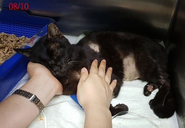 鐵蛋自5月份起健康狀況變得很不穩定,食慾不好,這讓大家很擔心,為了使鐵蛋的健康能有起色,於是在6月30日尋求內科名醫蘇璧伶醫師的協助,鐵蛋至沐恩住院接受蘇醫師的治療,因鐵蛋是愛滋貓咪,免疫系統的問題讓他的病情變得更加棘手,蘇醫師希望鐵蛋得到更好的照護並增加灌食次數,於是在8月2日安排鐵蛋住進台大的24小時病房。