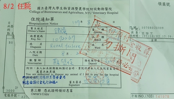 本筆醫助為鐵蛋在台大24小時病房住院及各項檢驗費用,請大家幫忙,感恩。