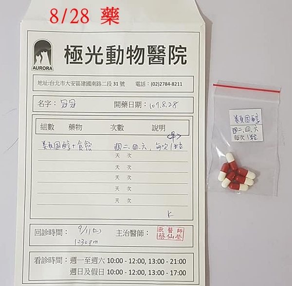 口腔部分只剩下左右上方有兩個紅點,冠冠口炎算穩定,有提到冠冠吃得不好,食慾促進劑改一週給三次。
