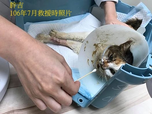 當時口炎極為嚴重,非常瘦弱,協會緊急帶牠就醫,經歷兩次輸血才終於穩定。