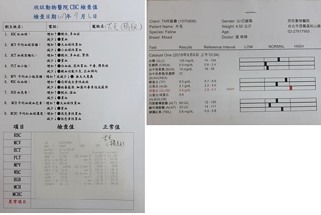 醫師詳細檢查並未發現傷口,於是就為他做個全身檢查,耳朵內耳垢多,點耳藥清潔,血檢結果無特別異常,只發炎蛋白較高,口腔檢查有口炎及結石、蛀牙,因此發炎蛋白才會較高,醫師為大毛進行牙周手術,將蛀牙拔除、清除結石。