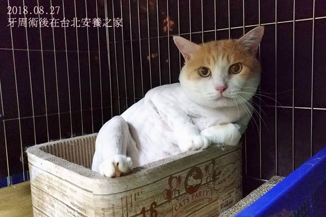因拔牙洗牙後須要觀察一段時間,所以奶油獅暫時留在台北安養之家,以便須要醫療時可以立即就診,因奶油獅的毛較長又密容易打結,為了使他舒爽些,8月27日請手藝精湛的工作人員為奶油獅理毛,理完毛的奶油獅模樣好可愛,現在嘴巴不痛,又理毛後舒坦,讓奶油獅精神食慾恢復得很好,。