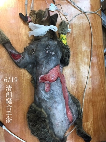 妙咪的傷口實在太大、太嚴重,住院期間歷經二次縫合手術,
