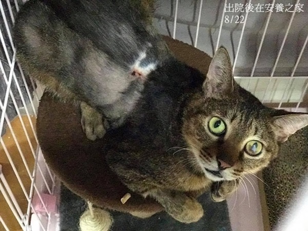 妙咪出院後住進安養之家,大家對他的遭遇非常心疼不捨,為了讓他安心休養,每天準備很多好好吃的肉肉讓他吃飽飽,妙咪剛開始怯生生的躲在小窩裡,但很快就發現每個人都很溫柔友善,開始會撒嬌討摸摸,休養一個多月下來, 妙咪長胖很多,越來越可愛,也開始交了貓咪朋友,希望妙咪可以忘記之前被傷害的恐懼, 在安養之家開心快樂的生活。