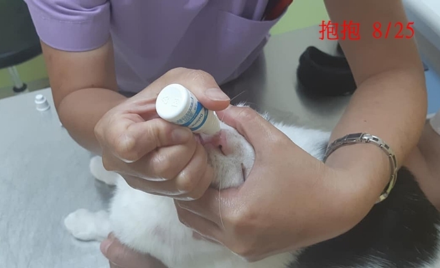 ※請注意,一定要確定餵後他有吞進到胃裡,藥不能停留在食道,因此餵了請用針筒立刻餵一些些水或立刻給食物。