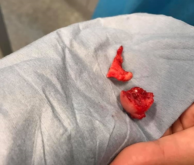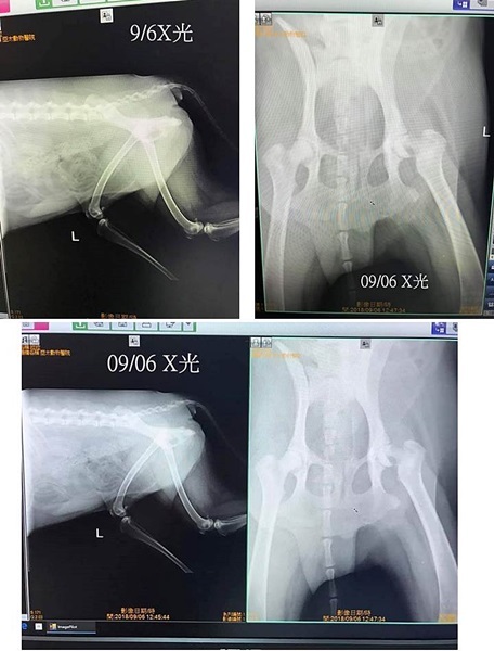 X光檢驗左後腿股骨骨折,手術切除斷裂的骨頭,