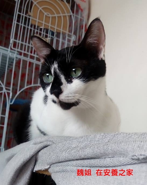魏姐是志工從五股收容所帶出的貓咪,當時經醫生檢查患有貓瘟,嚴重的嘔吐,下痢及嚴重脫水,經過一段時間的治療,魏姐挨過貓瘟病毒,並完成結紮,原是住在苗栗安養之家,但因貓瘟後遺症造成的慢性呼吸道感染讓她淚眼鼻涕不斷,須要常回診治療,因此將她帶至台北貓屋住下,以便就醫。