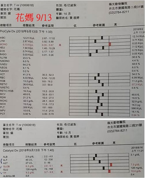 為了使冠冠的口炎及腎衰能得到有效的控制與改善,於8月28日帶他至極光動物醫院進行詳細檢查,因紅血球偏低,所以除了每天服用類固醇、免疫抑制劑及皮下注射,還要施打造血針,並須要再回診檢查,口炎的疾病是需要很長期的醫療,希望大家可以幫忙冠冠,感恩。