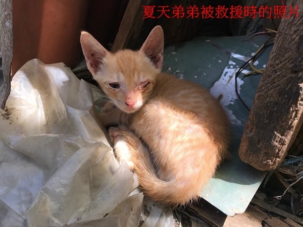 夏天弟弟是今年端午連假期間,志工在三峽執行TNR任務時發現的可憐小貓咪,當天共捕捉大小貓共38隻,包含四隻眼睛感染嚴重的小貓,