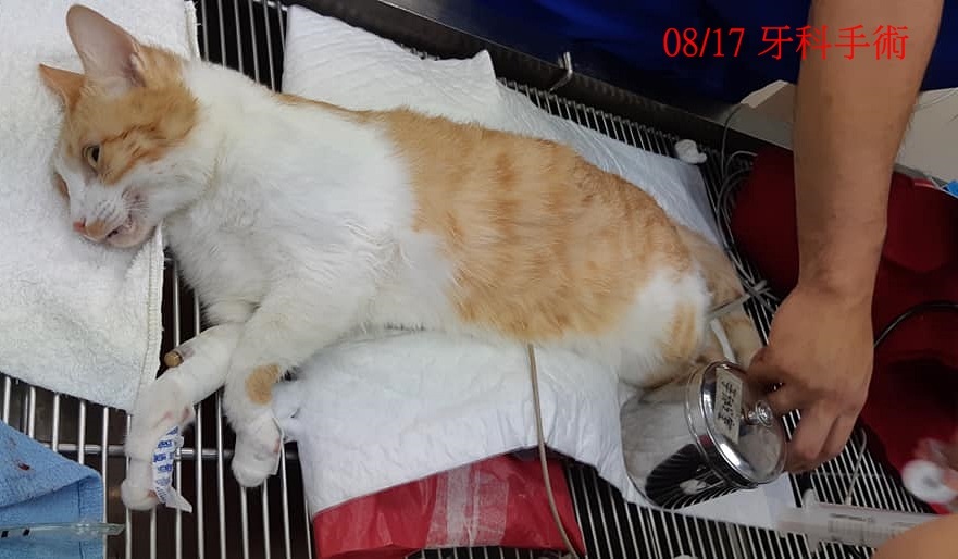 管管近日食慾精神很不好,於8/10約診沐恩林醫師檢查,牙齦很紅腫,是口炎讓管管不舒服,故安排於8/17進行牙周手術及組織切片送驗看口炎性質。