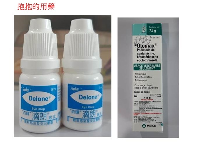1. 耳藥:1天1次,雙耳,晚上點,點完要擦拭乾淨。