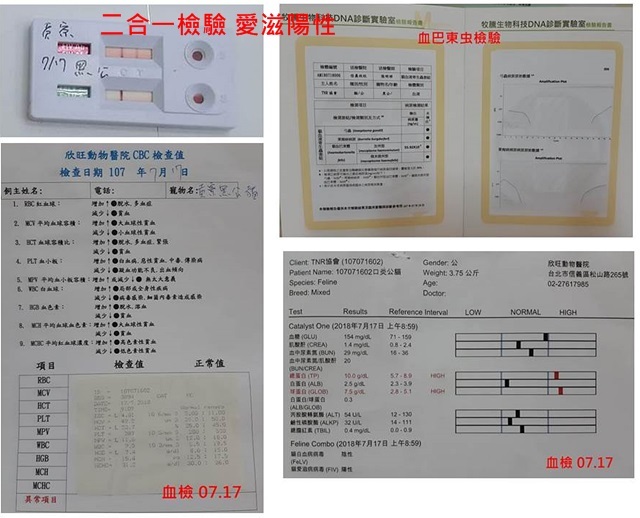 7/17 麻醉拔牙、結紮、全套血檢、二合一檢驗、血巴東虫送驗。