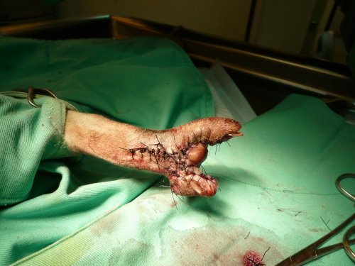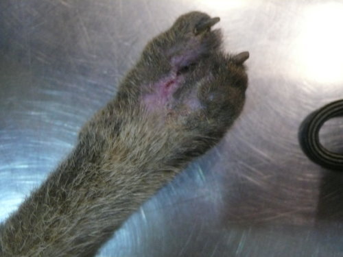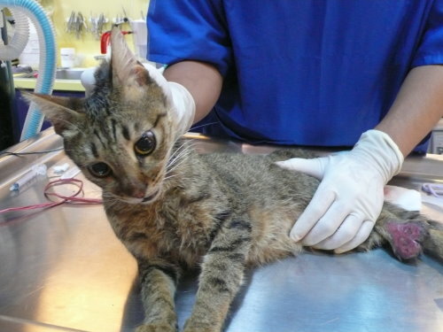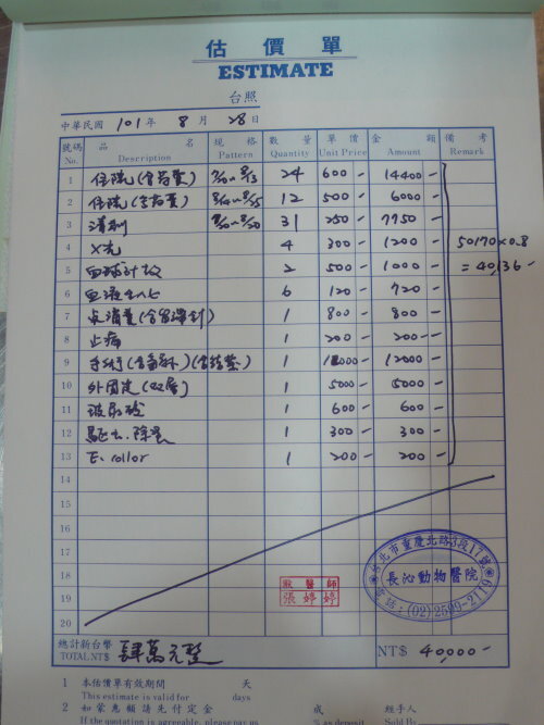 主題: 車禍骨折的虎斑貓-喬巴 申請者姓名: 林素蘭 花色: 申請日期: 2012-09-01 03:40:48 申請者部落格: 申請者臉書網址: 所在縣市/合作醫院: 台北市/長沁動物醫院 治療費用: 40000元 需求人數: 43人 已結案 (2012-12-08 18:49:02) 報名人員: 蘇小吉(已付款)、蘇小吉、angelcat(已付款)、Kelly(已付款)、曾美蓮(已付款)、Moon Wu(已付款)、May Chuang(已付款)、Andy Wang(已付款)、Patrick Liu(已付款)、小霸王叮噹(已付款)、趙君綺(已付款)、李婕瑜(已付款)、Chuck Lin(已付款)、李水晶(已付款)、meemee(已付款)、Grant Tsai(已付款)、何怡平(已付款)、曹博涵(已付款)、chiawei(已付款)、Wen-Chieh Juan(已付款)、meg(已付款)、味噌(已付款)、Chenyu Chang(已付款)、nicole chen(已付款)、何偉靖(已付款)、H.l. Lai(已付款)、yymeow(已付款)、yushi0304(已付款)、boodan(已付款)、Zoe Chen(已付款)、WUTI(已付款)、Wei(已付款)、Wei(已付款)、Wei(已付款)、Wei(已付款)、Wei(已付款)、Wei(已付款)、Wei(已付款)、Wei(已付款)、Wei(已付款)、Wei(已付款)、Rinee(已付款)、Yi-Sheng Lee(已付款)、林螢逸(已付款)、 候補人員: 小舟、小舟、 動物病情說明: 貓咪突然出現在餵食的區域,非常的怕人,吃東西總是很迅速,一吃完馬上跑走,無意見發現他經過的地方都會濕濕的,隔天特別觀察發現貓咪跛行且有開放性傷口,經捕捉就醫,小虎是腳踝骨折無法正常行走,拖行導致腳背感染潰爛見骨,第三~第四趾骨細菌感染導致骨融解,經醫師評估後決定截除已溶解之第三第四趾骨,並保留掌墊部分供日後行走承重之用,並架設兩段式外固定,提供腳踝骨頭癒合支撐之用並可兼顧每天換藥的需求,經一個月治療後已可行走並精神食欲皆佳,已帶回照顧。費用部分還請大家幫幫忙。