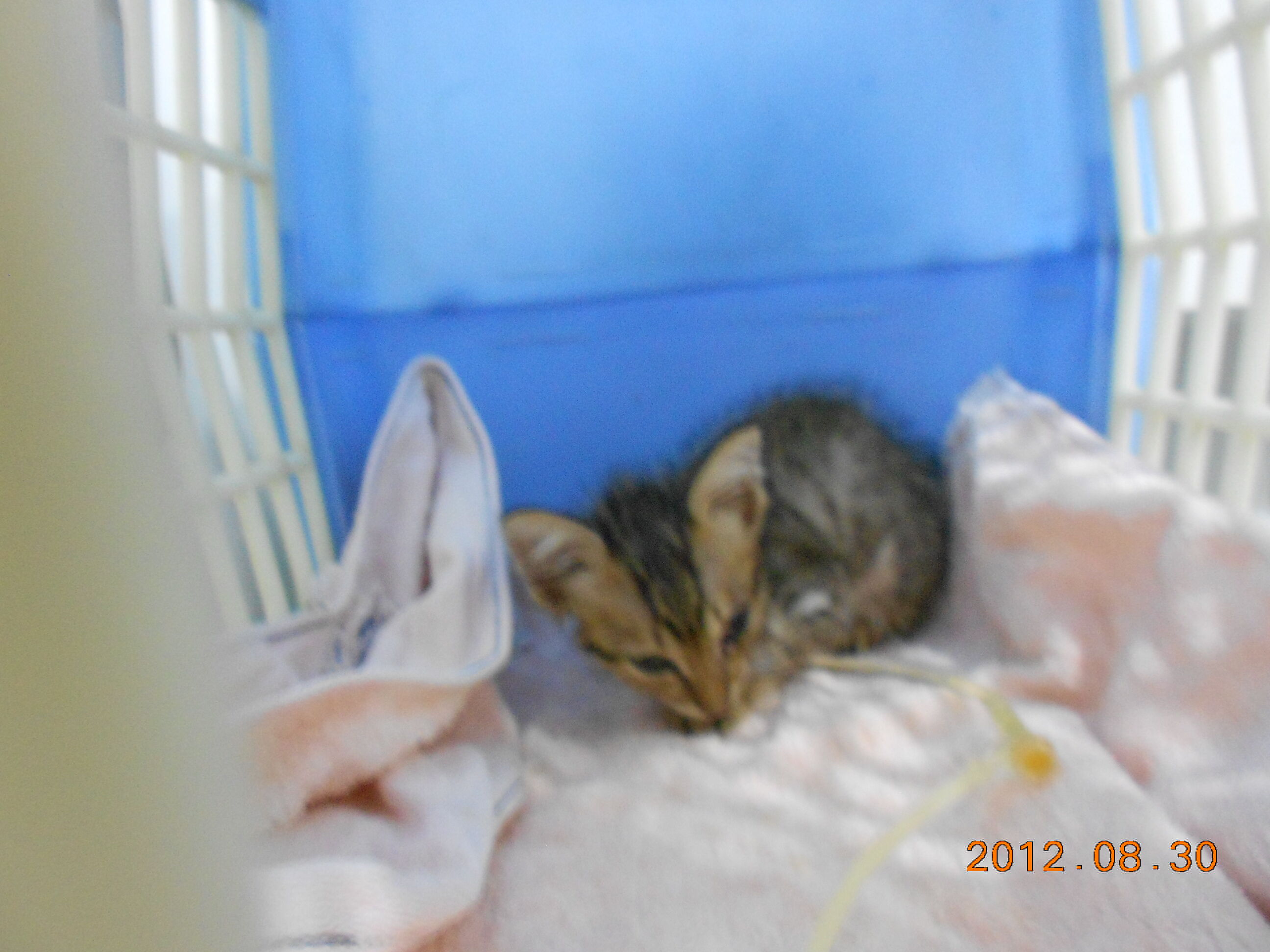 主題: 貓瘟瘦弱小貓 申請者姓名: Sarah Lo 花色: 申請日期: 2012-09-01 15:16:23 申請者部落格: 申請者臉書網址: http://www.facebook.com/sarah.lo.908 所在縣市/合作醫院: 新北市/集賢愛生 治療費用: 1500元 需求人數: 6人 已結案 (2013-06-27 13:33:59) 報名人員: hyde0208(已付款)、Moon Wu(已付款)、Hikaru(已付款)、小霸王叮噹(已付款)、Una Lee、Una Lee、Antelie x2(已付款)、 候補人員: 小舟、小舟、 動物病情說明: 在做TNR時發現這隻瘦弱小貓(尾巴受傷),就將他帶回家,但是一帶他回家,他就開始拉肚子也不吃不喝,