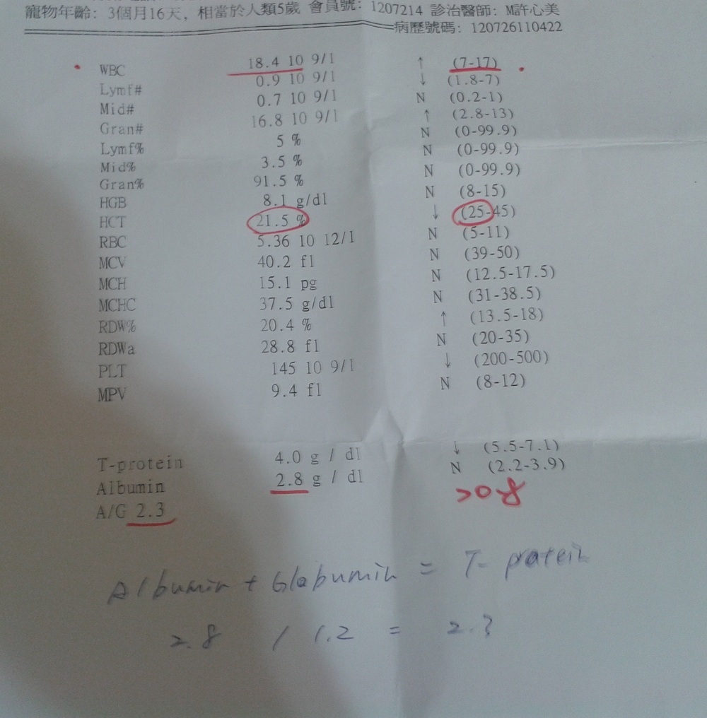 主題: 冠狀病毒.拉肚子.發燒.貧血 申請者姓名: 簡嘉 花色: 申請日期: 2012-09-02 18:41:33 申請者部落格: 申請者臉書網址: http://www.facebook.com/catcat0528 所在縣市/合作醫院: 台北市/長青動物醫院 治療費用: 2810元 需求人數: 12人 已結案 (2013-06-27 13:34:21) 報名人員: Ariel Yu-Ting Tu(已付款)、Yushan Hsieh(已付款)、小欣、H.l. Lai(已付款)、JIN(已付款)、派大熊(已付款)、Chenyu Chang(已付款)、Sherry Fang(已付款)、Sherry Fang(已付款)、Jeanine An(已付款)、WeiMin Lin(已付款)、F.y. Yang(已付款)、Elie Huang(已付款)、 候補人員: 小舟、小舟、小舟、 動物病情說明: 這隻小橘貓是在誘捕萬華專案TNR時,撞見母媽貓已生下的小貓..