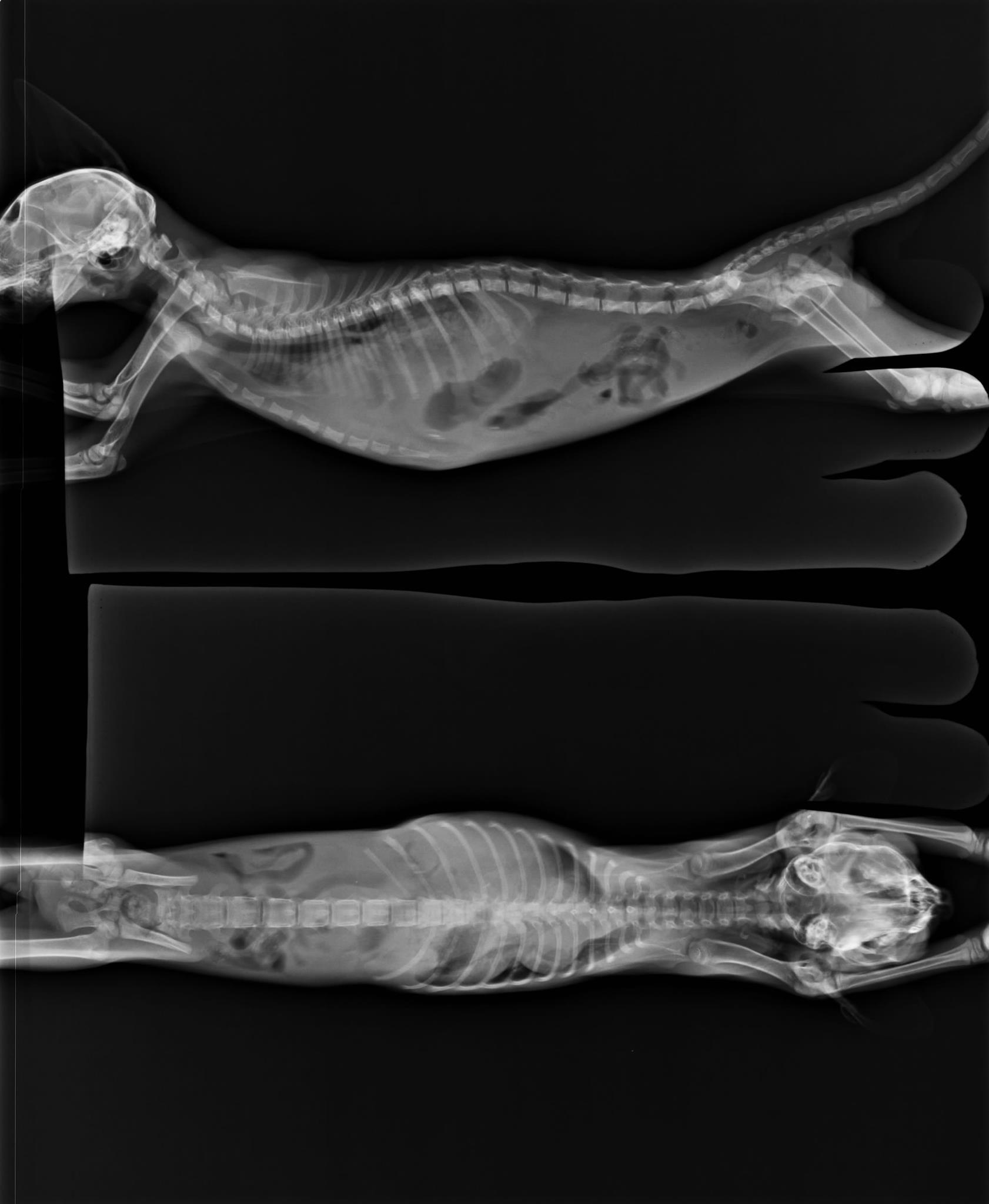 醫生和我都決定賭個機會,醫生說原本只開肚子要把肝、胃拉下來再補洞起來,發現無法拉下來,只好切開胸骨,果然肝、骨、肺都沾黏、一半的肺葉也被壓的扁扁的,醫生很細心慢慢把器官剝開,如果一不小心,就會大量出血,小貓咪就會掛了。